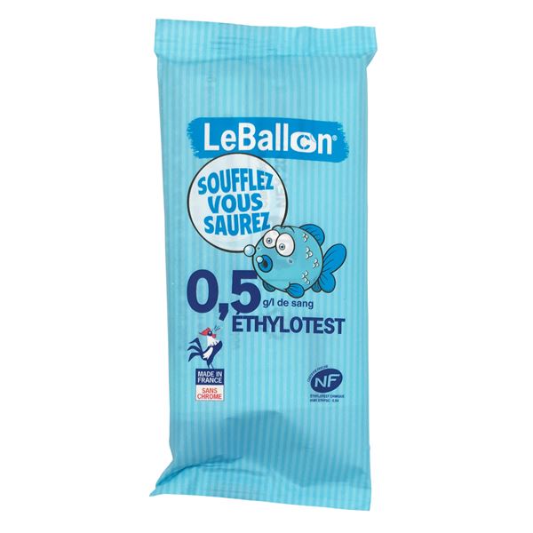 Ethylotest à usage unique est calibré à 0,5 g/L de sang.