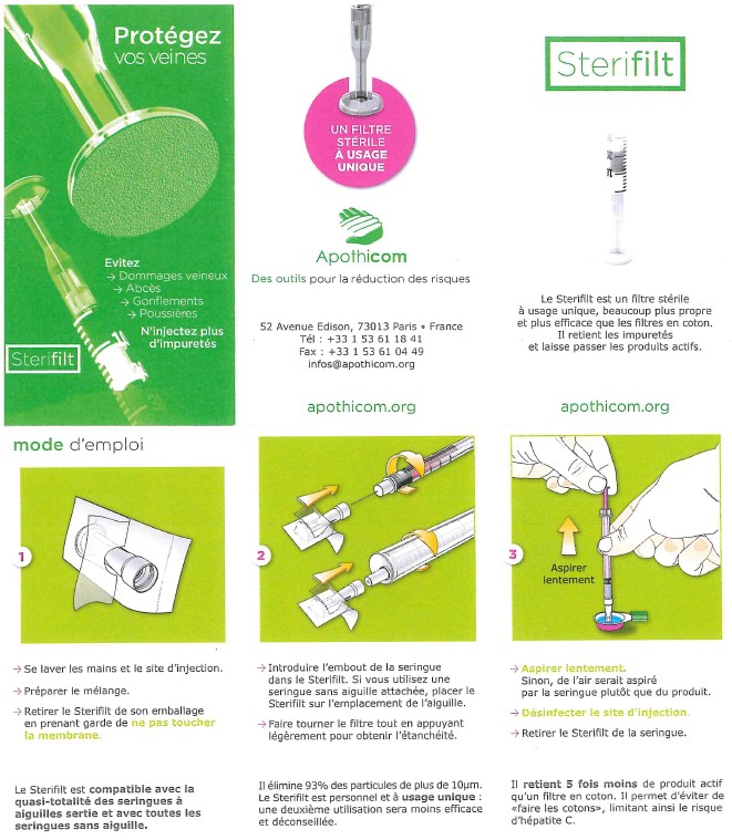 En papier, elles ne peuvent pas être réutilisées. Le support papier permet la diffusion d’un petit message de prévention et des adresses de lieux de réduction des risques. -